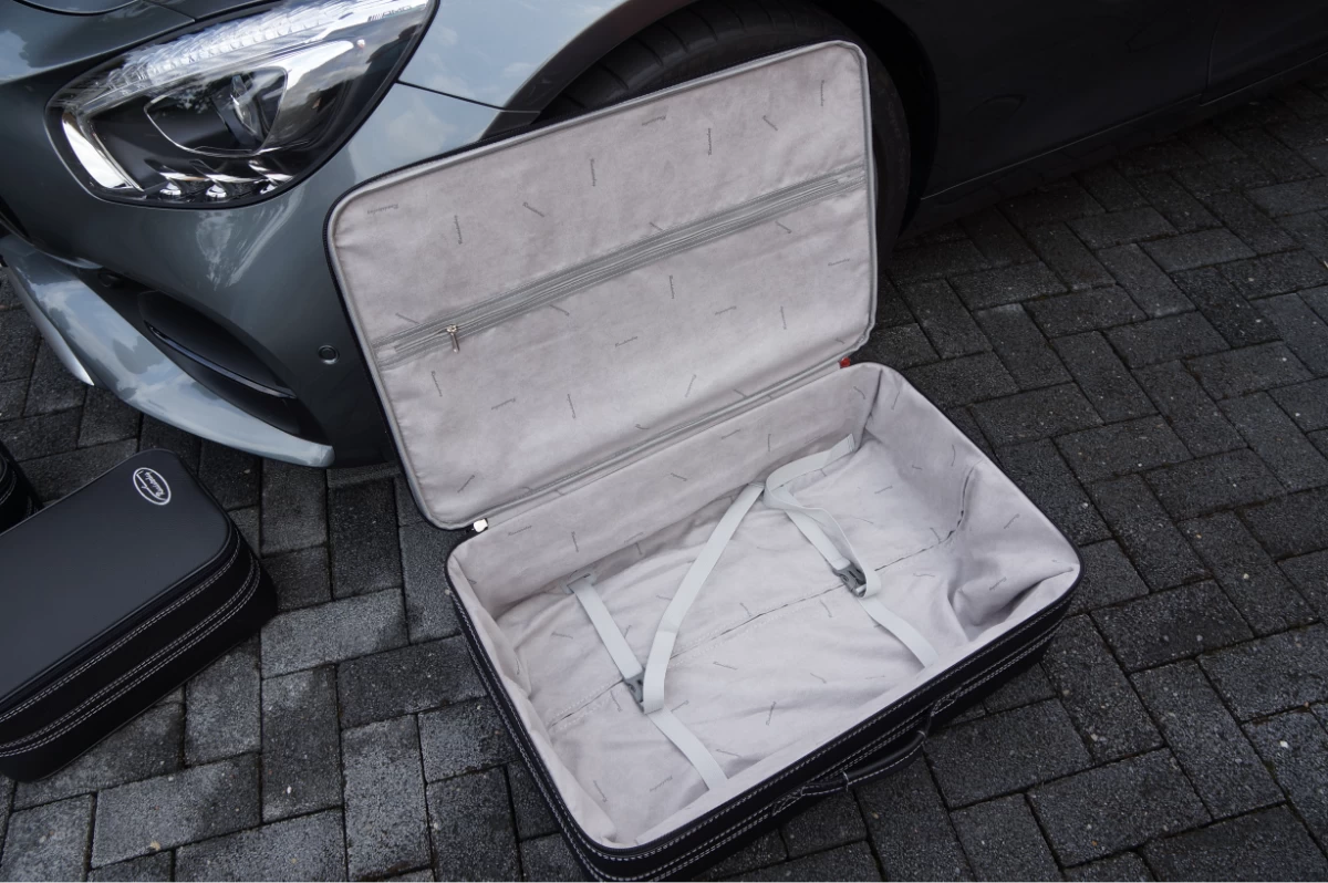 Sie möchten mit geöffnetem Fahrzeugdach auf Reisen gehen und dabei dennoch nicht am Gepäck sparen? Das edle vierteile Kofferset für den Mercedes AMG GT Roadster bietet jede Menge Stauraum und ist perfekt auf Optik und Maße Ihres Wagens ausgelegt. Die vier Koffer lassen sich auch außerhalb des Kofferraums komfortabel transportieren – dank bequemer Tragegriffe aus italienischem Echtleder. Die erstklassige Verarbeitung und ein hochwertiges Innenfutter aus edler Ancarra-Mikrofaser garantieren zudem einen stilsicheren und eleganten Auftritt. Die exakte Passform der Koffer gewährleistet, dass die empfindliche Dachsensorik nicht gestört wird, damit es nicht zu Fehlfunktionen kommt!