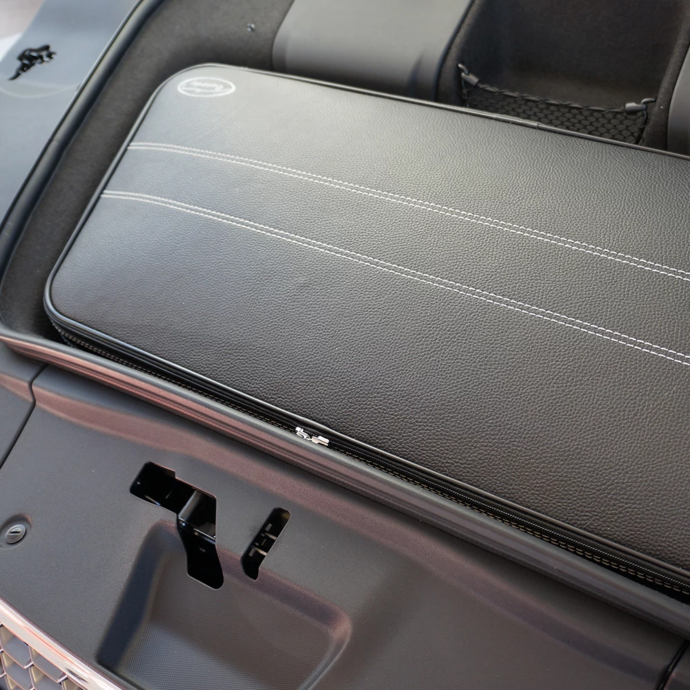 Dieses zweiteilige Kofferset ist die ideale Wahl, wenn Sie mit Ihrem Audi R8 4S Spyder gerne Ausflüge mit großem Gepäck unternehmen. Die zwei praktischen Koffer passen durch ihr Design perfekt in den Kofferraum Ihres Wagens. Hergestellt aus italienischem Leder mit einem hochwertigen Innenfutter aus Ancarra®-Mikrofaser und luxuriöser Stickerei sind diese Gepäckstücke optisch absolut gelungen. Ein innovativer Metall-Kunststoff-Verbundrahmen sorgt für die nötige Stabilität. Dank bequemer Tragegriffe lassen sich die Koffer komfortabel transportieren.