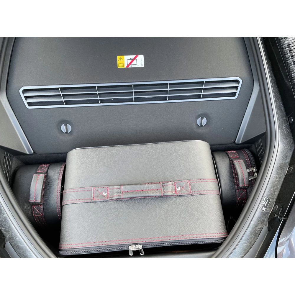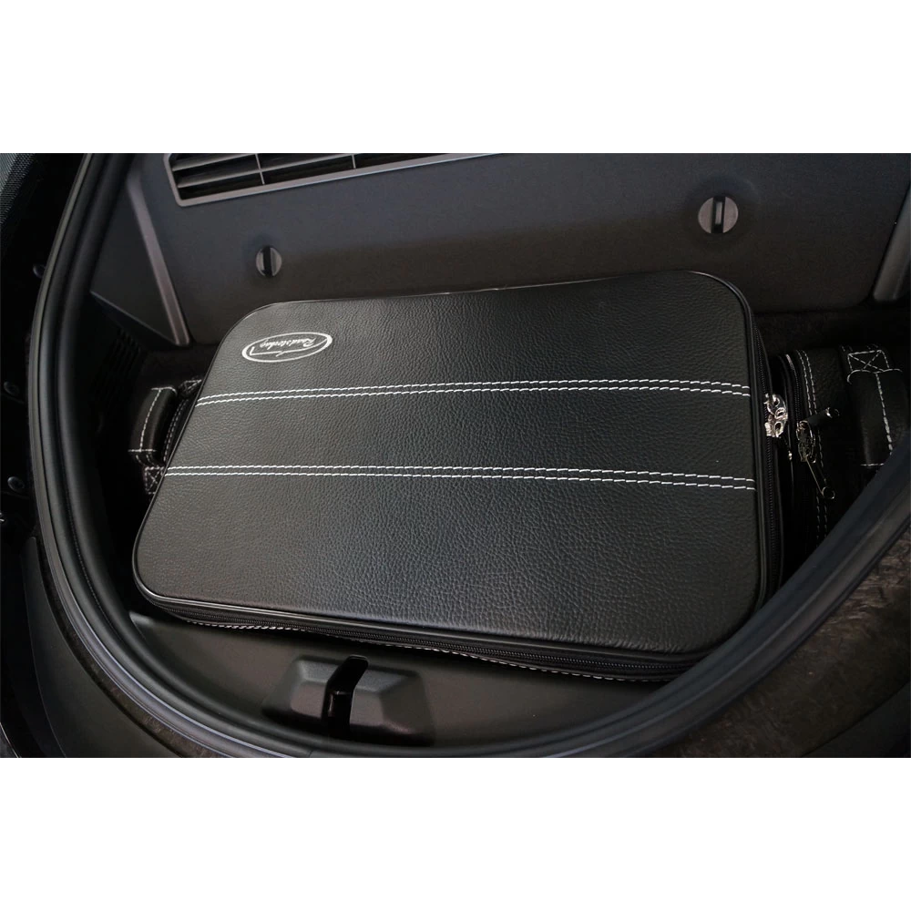 Dieses 5-teilige Kofferset aus edlem italienischem Leder wurde speziell für das BMW i8 Roadster Cabrio entwickelt und passt exakt in den Kofferraum, ohne Platz zu verschwenden. So können Sie immer mit maximalem Gepäck auch bei offenem Verdeck auf Tour gehen. Die Koffer verfügen über einen abschließbaren Deckel mit Innenfach (mit Reißverschluss) und Spannbänder für die Fixierung des Kofferinhaltes, damit bei der Reise nichts verrutscht. Der Leichtbau-Rahmen der Koffer sorgt für Stabilität und leichte Handhabung, das gestickte Logo, wählbare farbige Nähte und feines Innenfutter aus Ancarra®-Mikrofaser verleihen dem Set eine edle Optik.