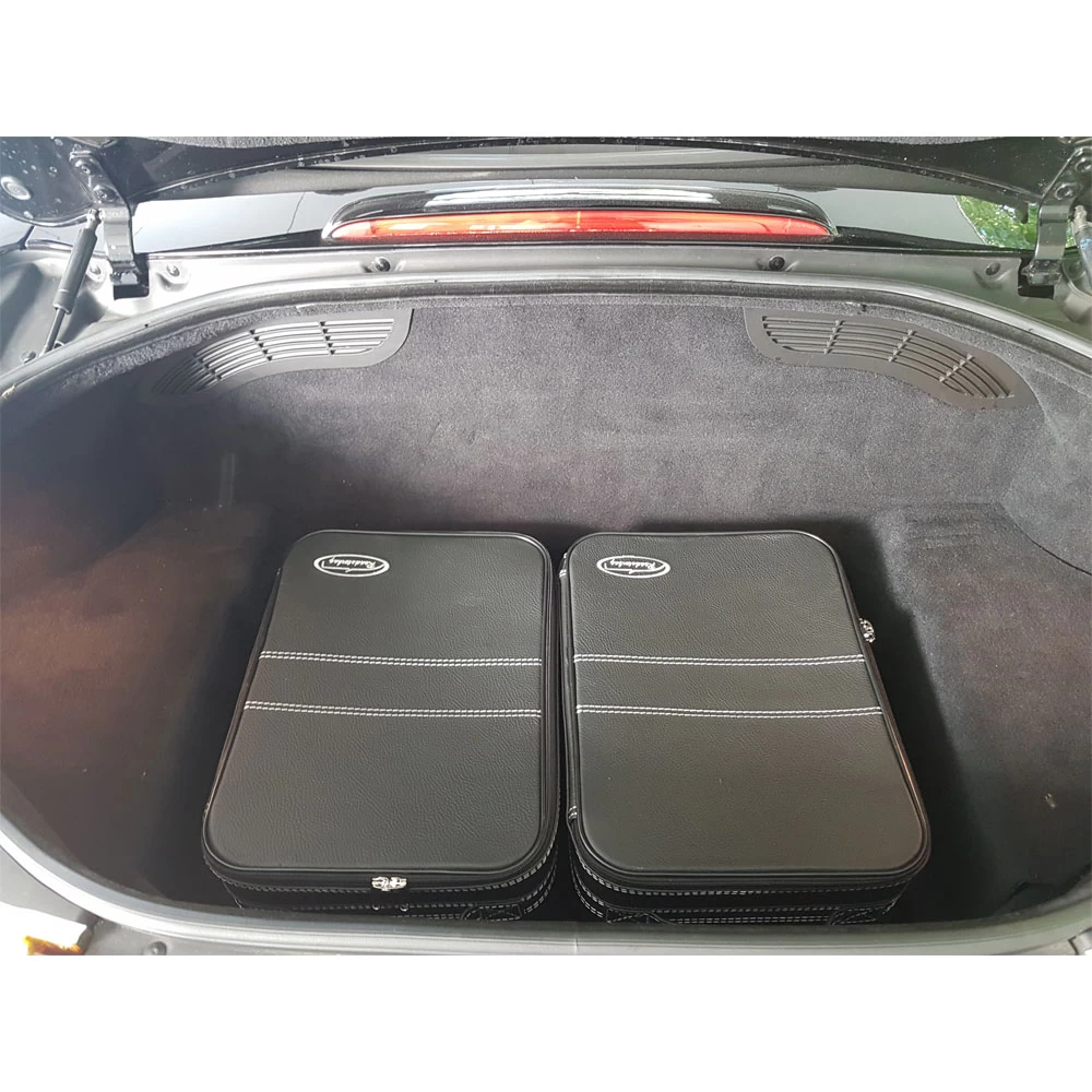 Dieses 4-teilige Kofferset wurde speziell für den BMW Z8 entwickelt und passt exakt in den Kofferraum, ohne Platz zu verschwenden Die vier großen Koffer, zum Teil mit smartem, trapezförmigem Design, passen zentimetergenau. So können Sie immer mit maximalem Gepäck auch bei offenem Verdeck auf Tour gehen. Die Koffer verfügen über einen abschließbaren Deckel mit Innenfach (mit Reißverschluss) und Spannbänder für die Fixierung des Kofferinhaltes, damit bei der Reise nichts verrutscht. Der Leichtbau-Rahmen der Koffer sorgt für Stabilität und leichte Handhabung, das gestickte Logo, wählbare farbige Nähte und feines Innenfutter aus Ancarra®-Mikrofaser verleihen dem Set eine edle Optik.