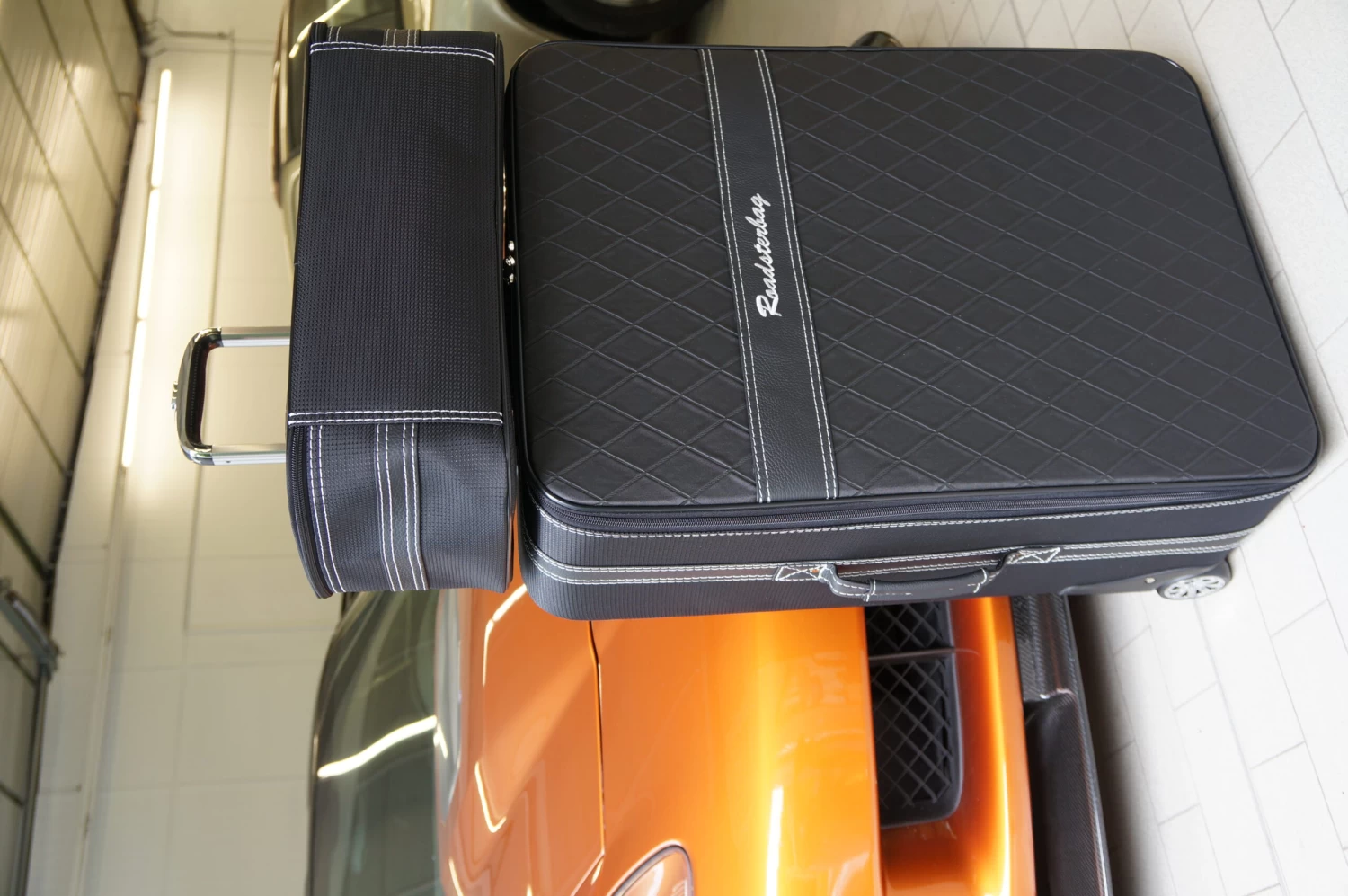 Dieses vierteilige Kofferset von Roadsterbag ist speziell auf den Kofferraum des Chevrolet Corvette C6 zugeschnitten. Die Trolleys und die passenden Koffer nutzen den vorhandenen Stauraum optimal aus. Die Trolleys sind mit voll versenkbarem Griff, silikongedämpften, verchromten Laufrollen, Kugellagerung und Inside-Trolley-Technik aus leichtem Aluminium ausgestattet. Die erstklassige Verarbeitung und das hochwertige Innenfutter aus edler Ancarra-Mikrofaser verleihen dem Set eine edle Optik, die sich nahtlos in das Innendesign Ihres Wagens einfügt. Dank bequemer Tragegriffe und stabilem Rollensystem lassen sich die Gepäckstücke komfortabel transportieren.
