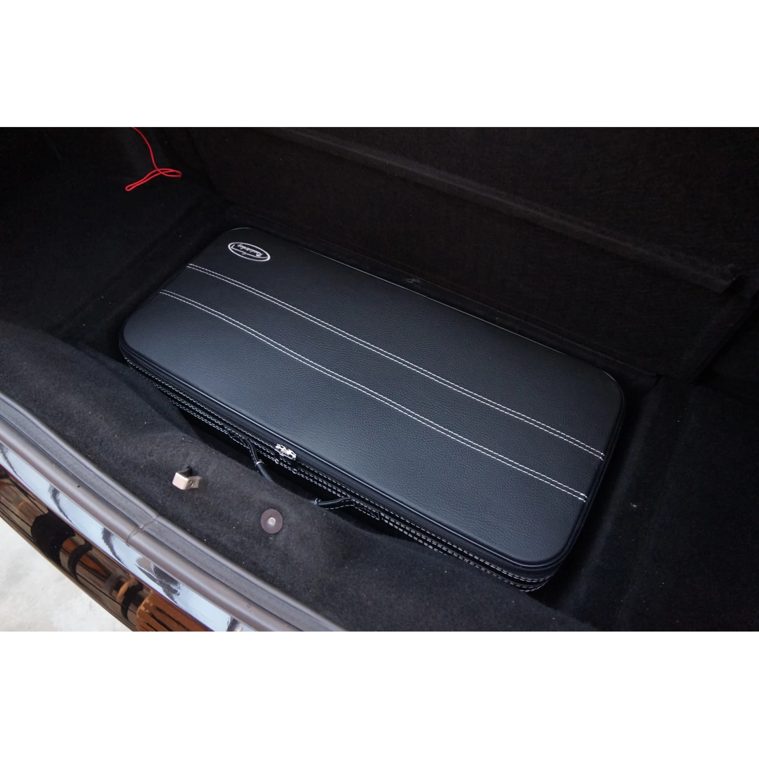 Dieser Zusatzkoffer von Roadsterbag ist speziell für den Raum unter dem Kofferraumboden des Ferrari 612 Scaglietti zugeschnitten und ergänzt das dreiteilige Kofferset für den Kofferraum. Der Koffer nutzt den vorhandenen Stauraum optimal aus. Die erstklassige Verarbeitung und das hochwertige Innenfutter aus edler Ancarra-Mikrofaser verleihen dem Set eine edle Optik, die sich nahtlos in das Innendesign Ihres Wagens einfügt. Dank bequemer Tragegriffe lässt sich das Gepäckstück komfortabel transportieren.