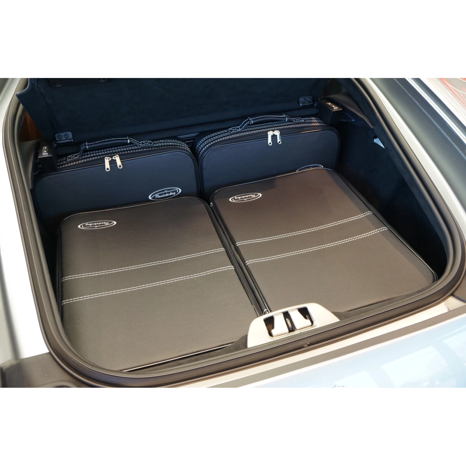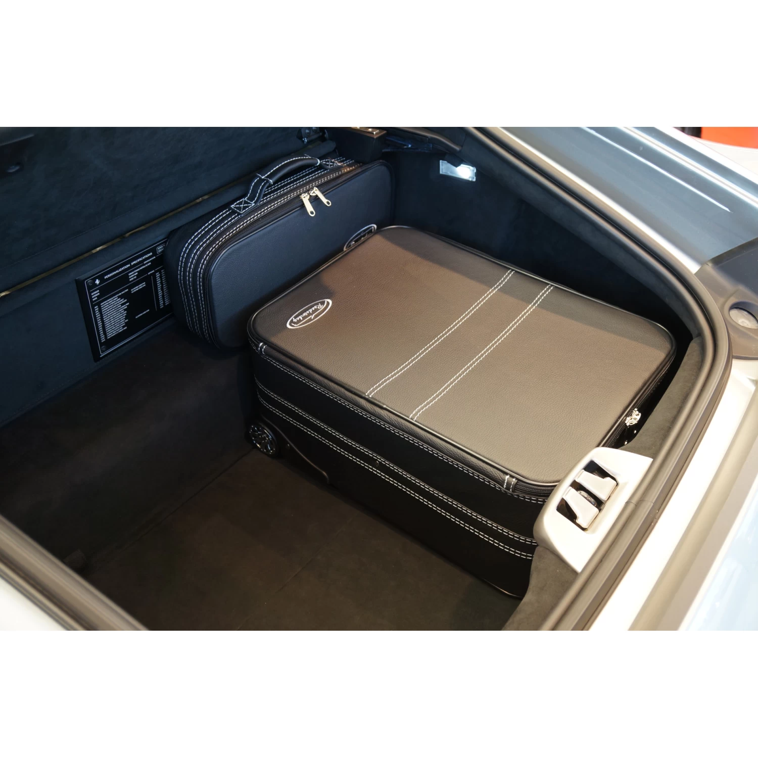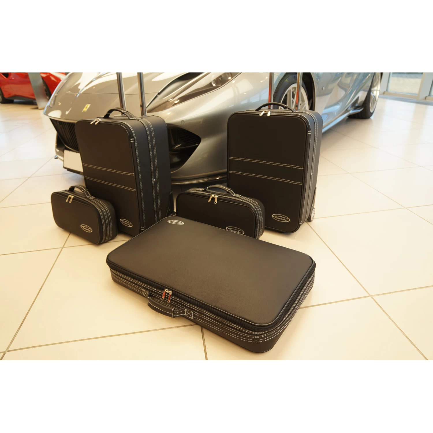 Dieses fünfteilige Kofferset von Roadsterbag ist speziell auf den Kofferraum des Ferrari 812 Superfast und des Ferrari F12 zugeschnitten. Der Trolley und die passenden Koffer nutzen den vorhandenen Stauraum optimal aus. Der große Koffer ist ein Trolley mit voll versenkbarem Griff, silikongedämpften, verchromten Laufrollen, Kugellagerung und Inside-Trolley-Technik aus leichtem Aluminium. Die erstklassige Verarbeitung und das hochwertige Innenfutter aus edler Ancarra-Mikrofaser verleihen dem Set eine edle Optik, die sich nahtlos in das Innendesign Ihres Wagens einfügt. Dank bequemer Tragegriffe lassen sich die Gepäckstücke komfortabel transportieren.
