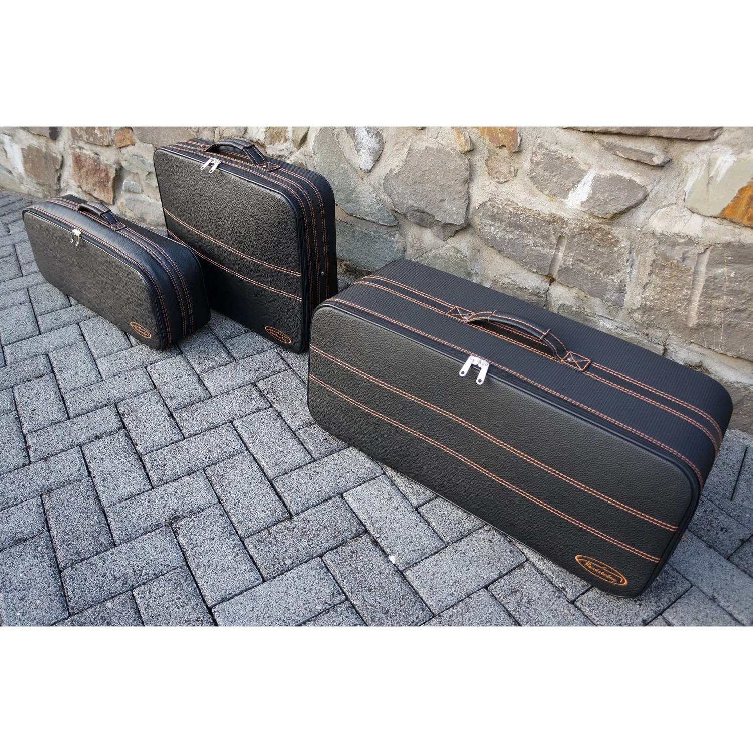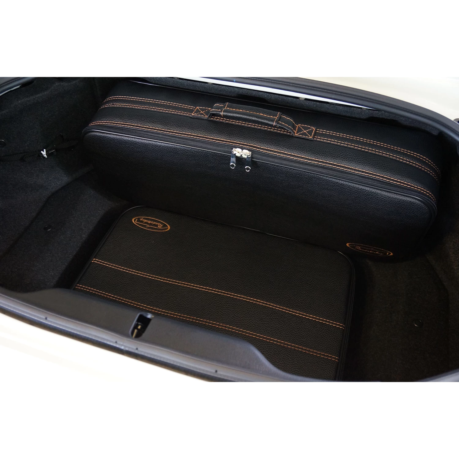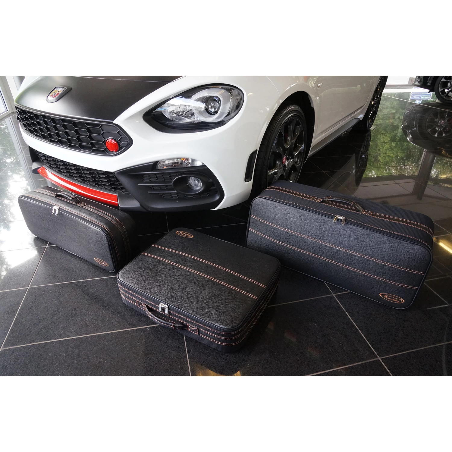 Dieses dreiteilige Kofferset von Roadsterbag ist speziell auf den Kofferraum des Fiat 124 Spider zugeschnitten. Die Koffer nutzen den vorhandenen Stauraum optimal aus, der besonders große obere Koffer folgt der Kofferraumklappen-Schräge. Die erstklassige Verarbeitung und das hochwertige Innenfutter aus edler Ancarra-Mikrofaser verleihen dem Set eine edle Optik, die sich nahtlos in das Innendesign Ihres Wagens einfügt. Dank bequemer Tragegriffe lassen sich die Gepäckstücke komfortabel transportieren.