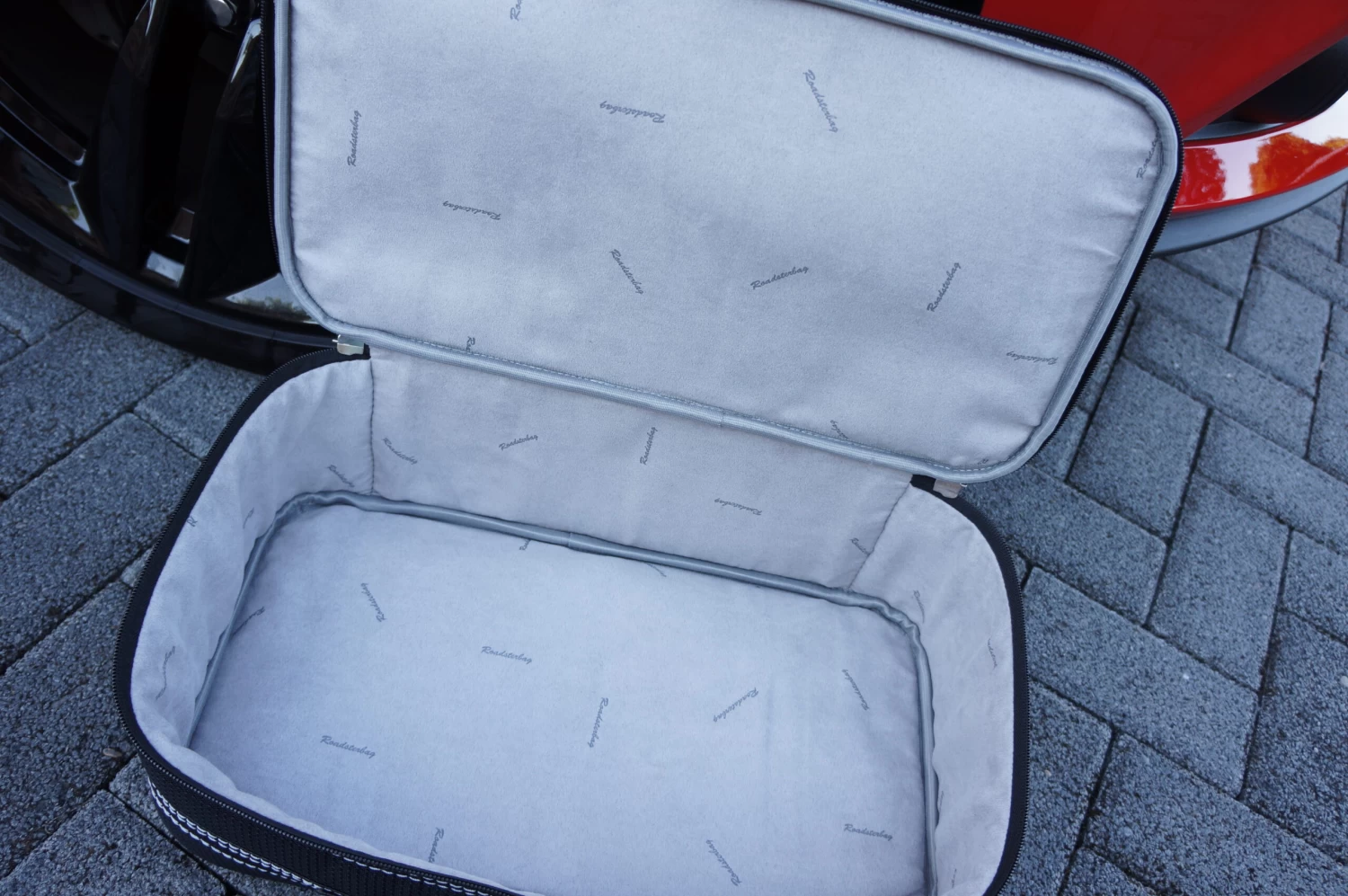 Dieses zweiteilige Kofferset von Roadsterbag ist speziell auf den Kofferraum des Ford Mustang VI Cabrio (ab 2014) zugeschnitten und ergänzt das große Kofferset. Die Zusatzkoffer nutzen den vorhandenen Stauraum in der hinteren Übergangsmulde optimal aus. Die erstklassige Verarbeitung und das hochwertige Innenfutter aus edler Ancarra-Mikrofaser verleihen dem Set eine edle Optik, die sich nahtlos in das Innendesign Ihres Wagens einfügt. Dank bequemer Tragegriffe lassen sich die Gepäckstücke komfortabel transportieren.