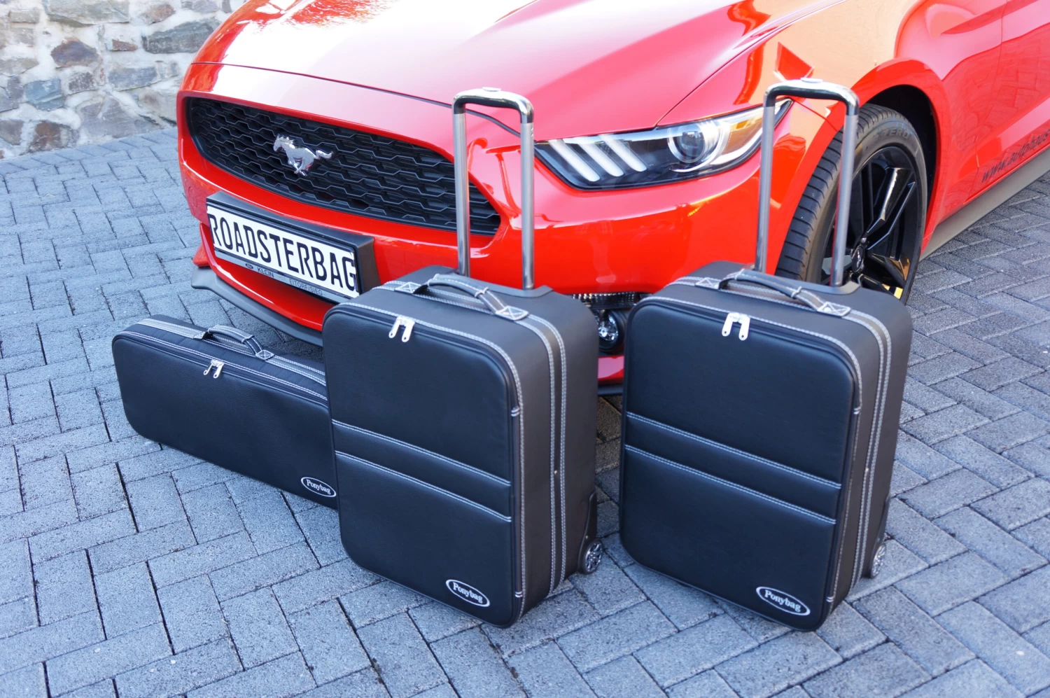 Dieses dreiteilige Kofferset von Roadsterbag ist speziell auf den Kofferraum des Ford Mustang VI Cabrio (ab 2014) zugeschnitten und kann mit einem zweiteiligen Zusatzkofferset ergänzt werden. Der Trolley ist mit voll versenkbarem Griff, silikongedämpften, verchromten Laufrollen, Kugellagerung und Inside-Trolley-Technik aus leichtem Aluminium ausgestattet. Die erstklassige Verarbeitung und das hochwertige Innenfutter aus edler Ancarra-Mikrofaser verleihen dem Set eine edle Optik, die sich nahtlos in das Innendesign Ihres Wagens einfügt. Dank bequemer Tragegriffe lassen sich die Gepäckstücke komfortabel transportieren.