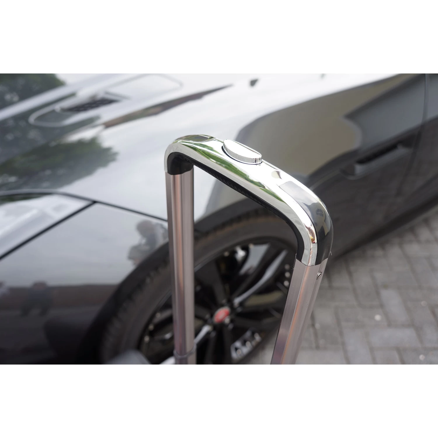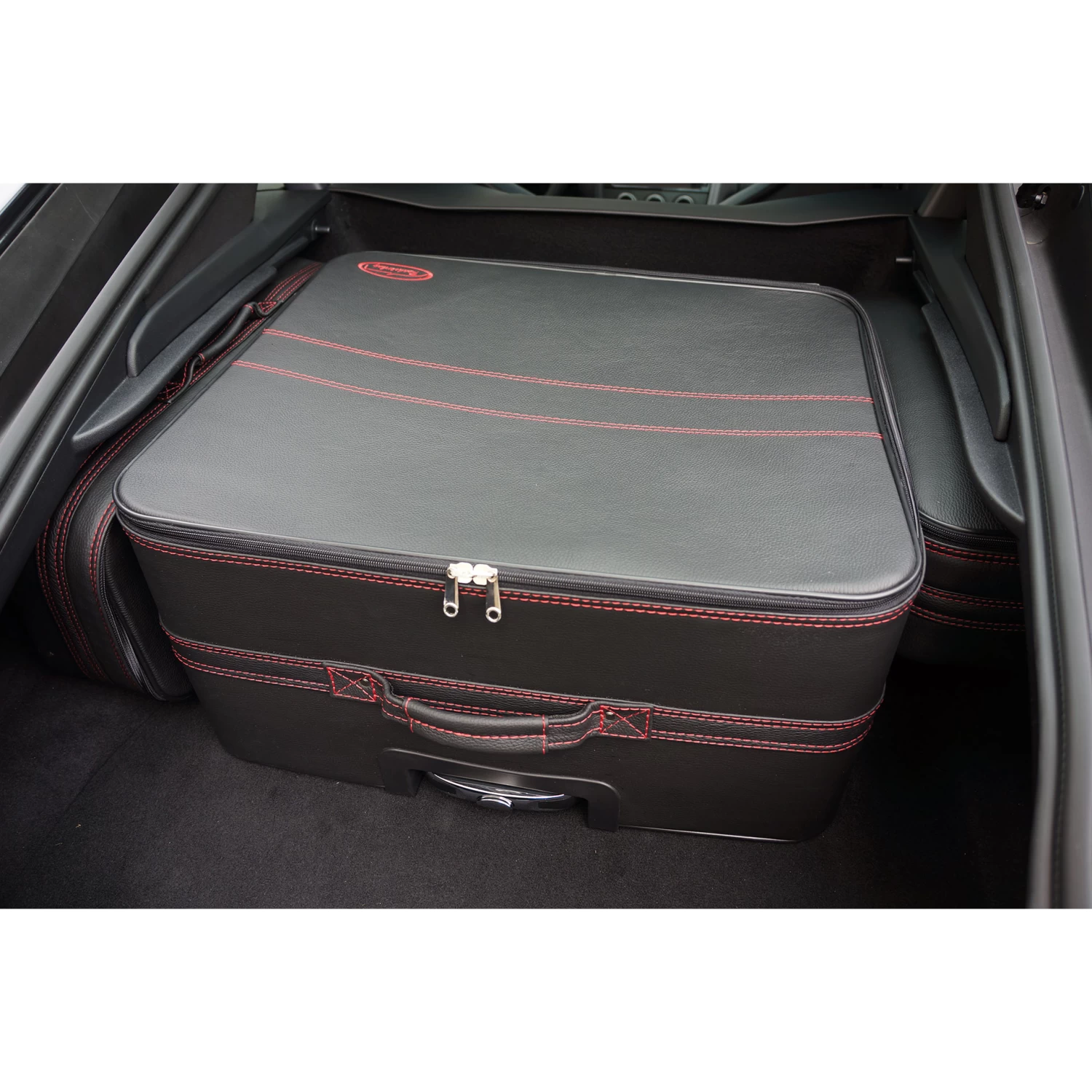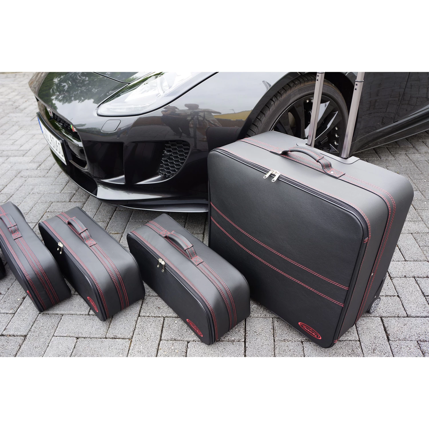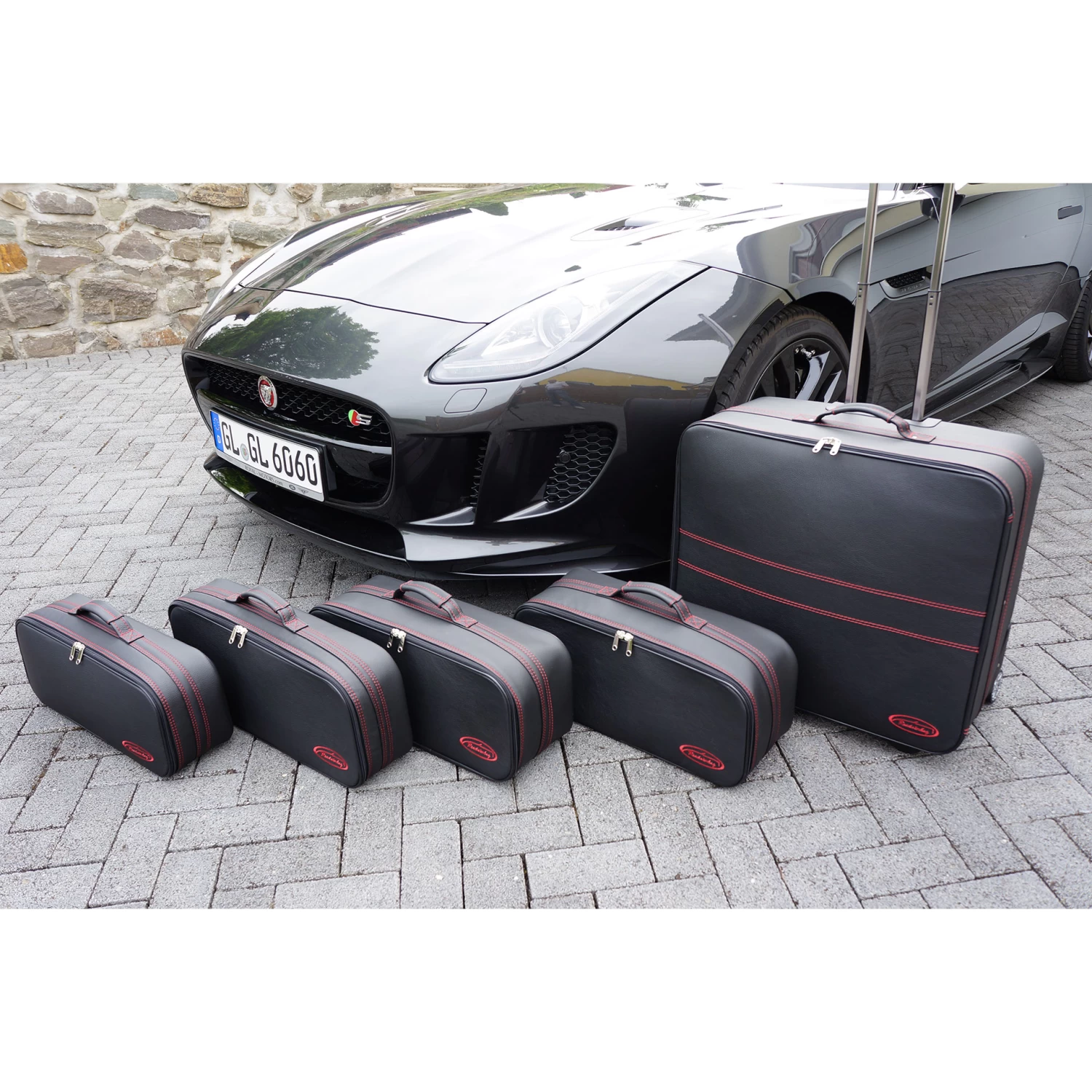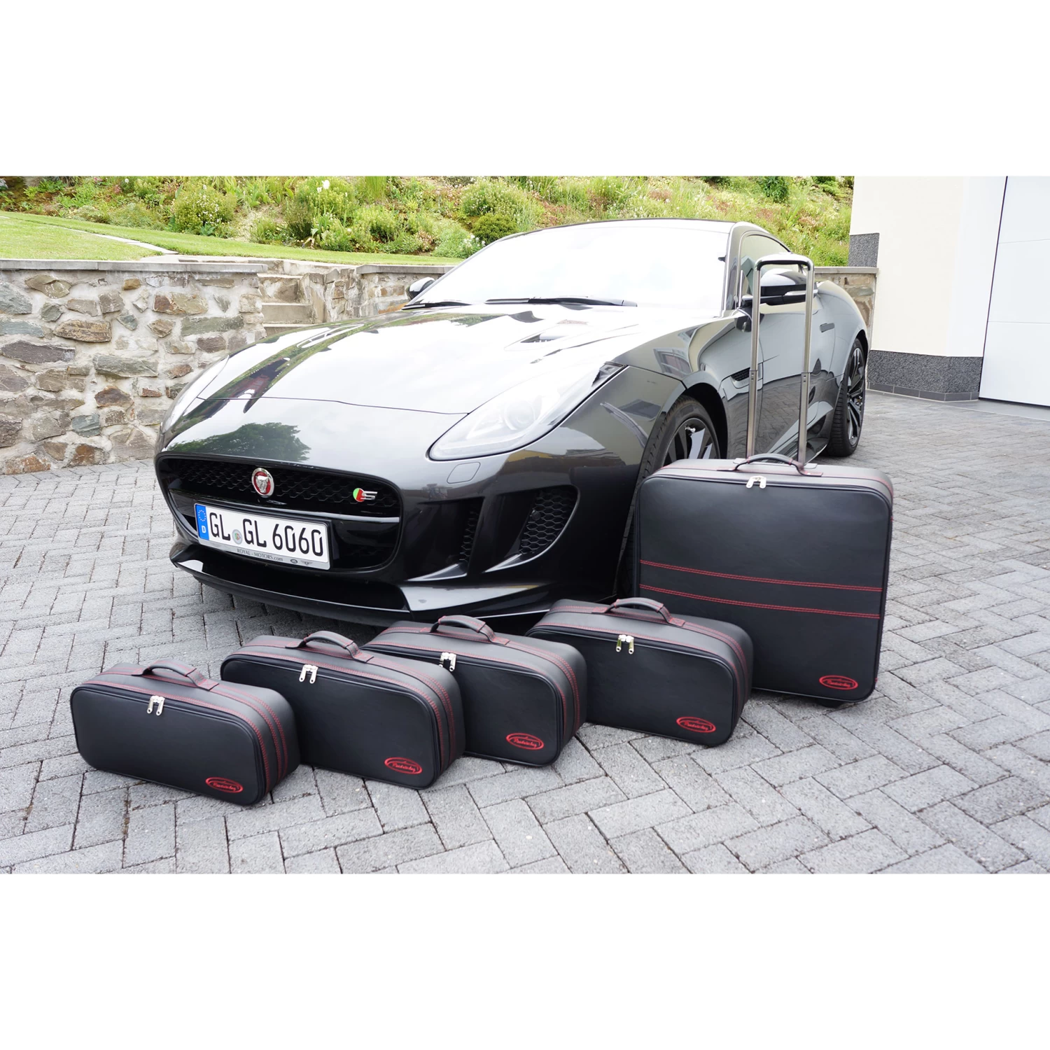 Dieses fünfteilige Kofferset von Roadsterbag ist speziell auf den Kofferraum des Jaguar F-Type Coupé (EU-Version) zugeschnitten. Der Trolley und die passenden Koffer nutzen den vorhandenen Stauraum optimal aus. Der große Koffer ist ein Trolley mit voll versenkbarem Griff, silikongedämpften, verchromten Laufrollen, einer Kugellagerung und Inside-Trolley-Technik aus leichtem Aluminium. Die erstklassige Verarbeitung und das hochwertige Innenfutter aus edler Ancarra-Mikrofaser verleihen dem Set eine edle Optik, die sich nahtlos in das Innendesign Ihres Wagens einfügt. Dank bequemer Tragegriffe lassen sich die Gepäckstücke komfortabel transportieren.