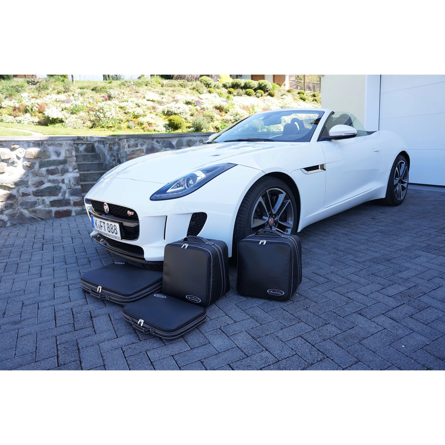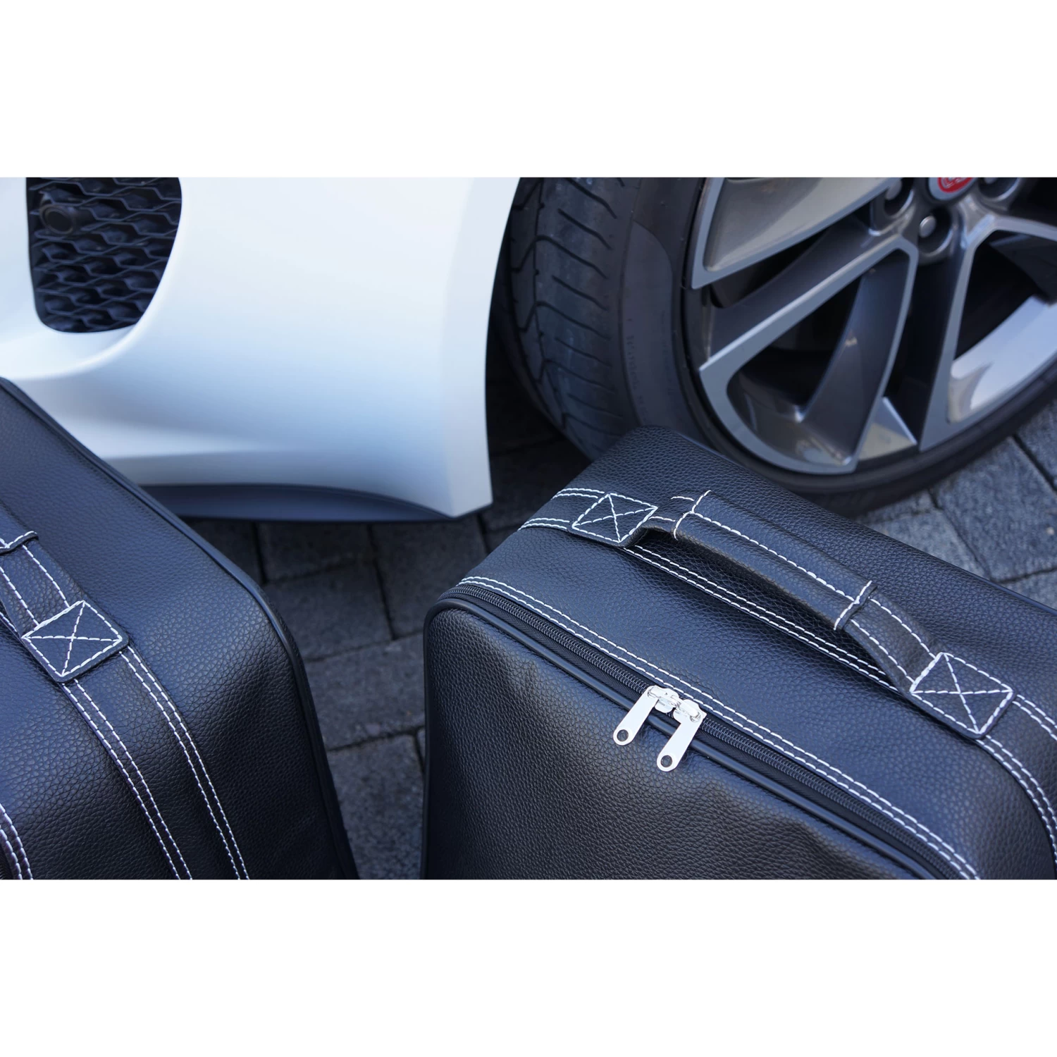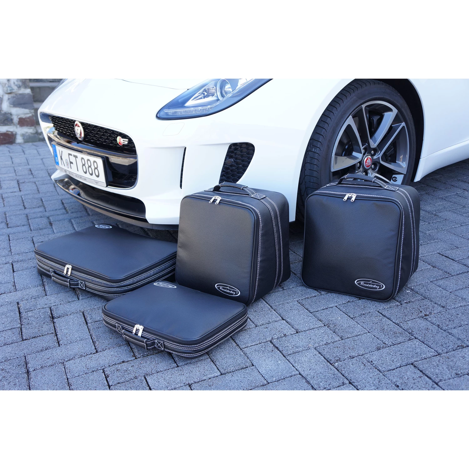 Dieses vierteilige Kofferset von Roadsterbag ist speziell auf den Kofferraum des Jaguar F-Type Cabrios (EU-Version) zugeschnitten. So fahren Sie auch mit offenem Verdeck mit maximalem Gepäck, die Koffer nutzen den vorhandenen Stauraum optimal aus. Di erstklassige Verarbeitung und das hochwertige Innenfutter aus edler Ancarra-Mikrofaser verleihen dem Set eine edle Optik, die sich nahtlos in das Innendesign Ihres Wagens einfügt. Dank bequemer Tragegriffe lassen sich die Gepäckstücke komfortabel transportieren.