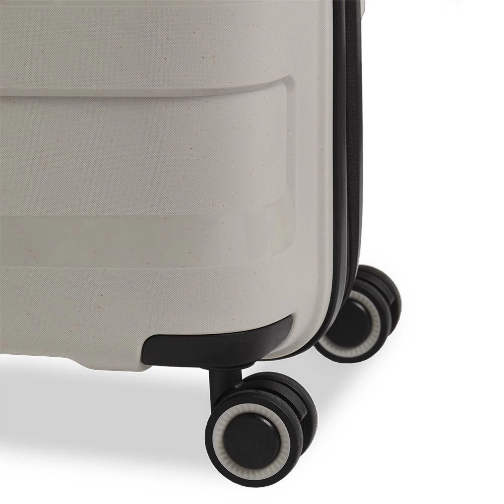 Die Serie Straw + ist der nachhaltige Reisebegleiter mit dem gewissen Etwas. Der Stratic Straw + besteht zu 25% aus Stroh, was den Koffer energieffizient in der Produktion und schnell recyclebar macht. Dank eines Reißverschlusses kann der Koffer einfach von 65 L auf 74 L Fassungsvermögen erweitert werden und ermöglicht somit maximales Packvolumen für die Reise. Das Innere ist mit Satin ausgelegt und unterteilt in zwei geräumige Hauptfächer mit hoch belastbaren Kreuzspanngurten sowie einem Reißverschlussfach. Ein Kugelgelagertes Leichtlauf-Doppelrollensystem und ein ergonomisch geformter Griff an einem arretierbaren Teleskopgestänge lassen den Koffer extrem leicht fahren und bepackt wendig manövrieren. Die Ausstattung mit einem TSA Schloss für die Reisen in die USA und GB ist selbstverständlich.