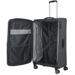 Die einzigartige Oberfläche mit modischem Wechselspiel aus rauen und glänzenden Elementen macht diesen Trolley zu etwas ganz Besonderem.